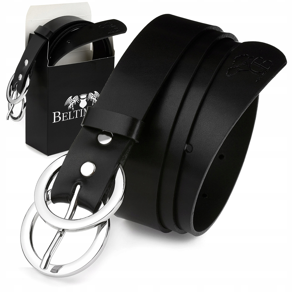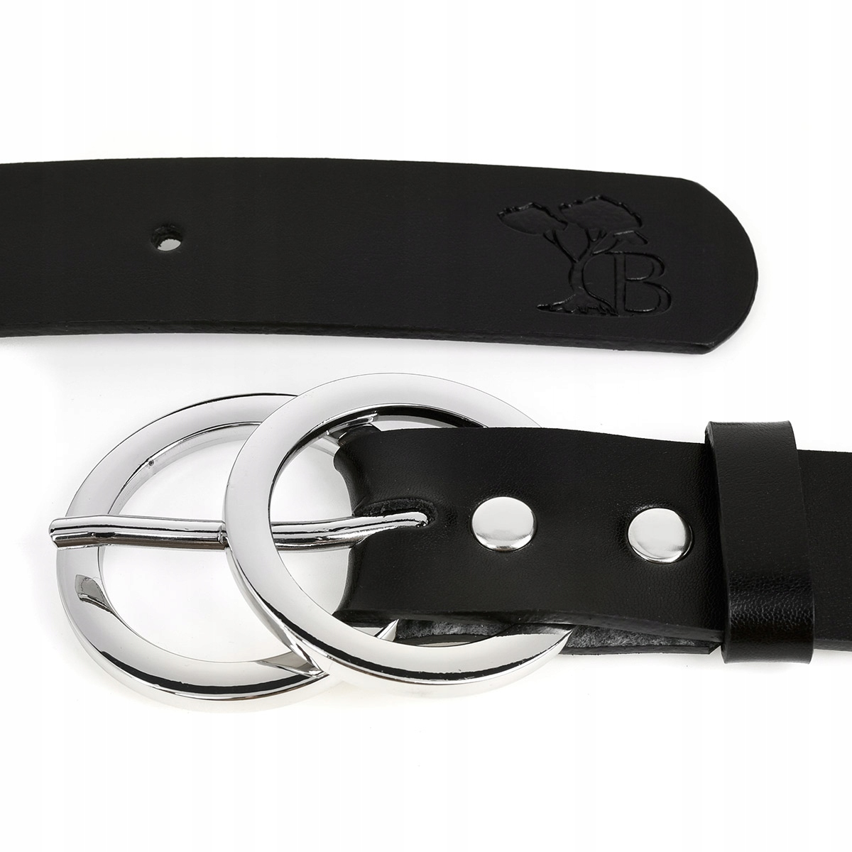 Beltimore skórzany pasek damski srebrne koła modny