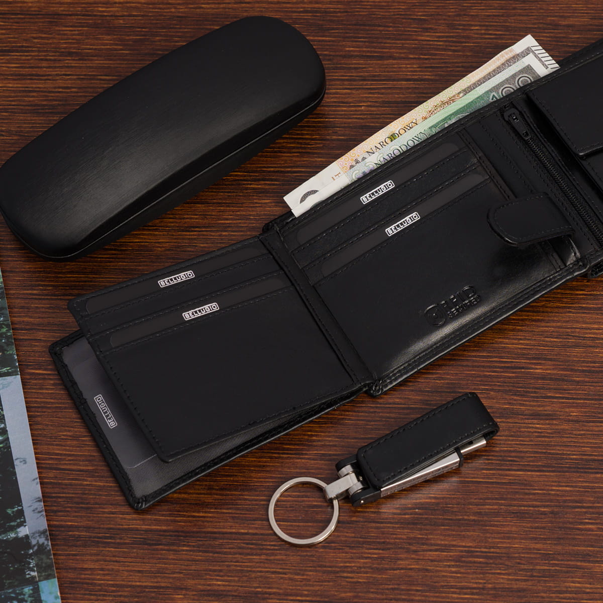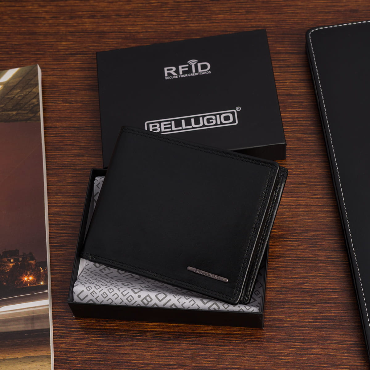 Duży portfel męski z systemem RFID Bellugio - czarny