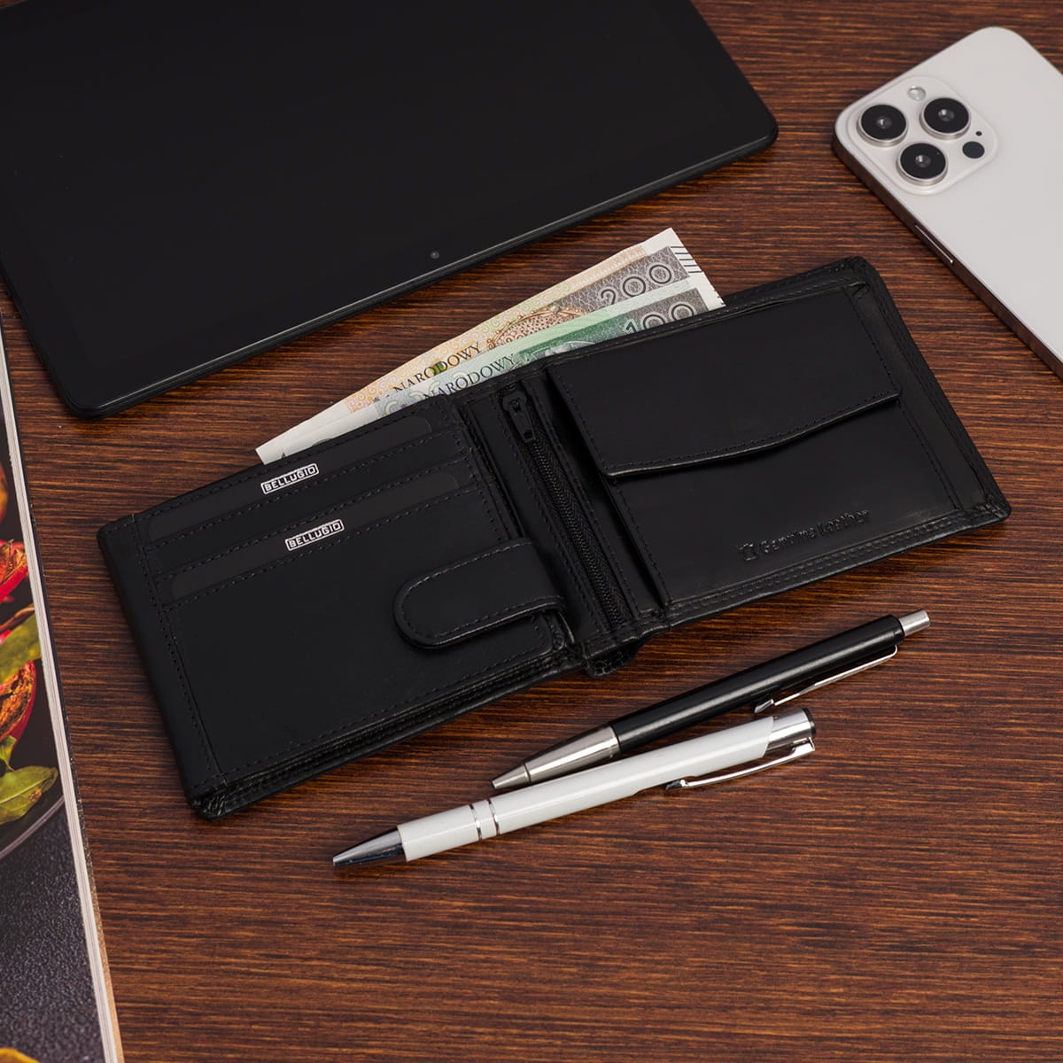 Model ten to klasyka gatunku – bez zapięcia, co sprawia, że doskonale nadaje się do przechowywania większej ilości gotówki, zachowując przy tym pełen komfort użytkowania.