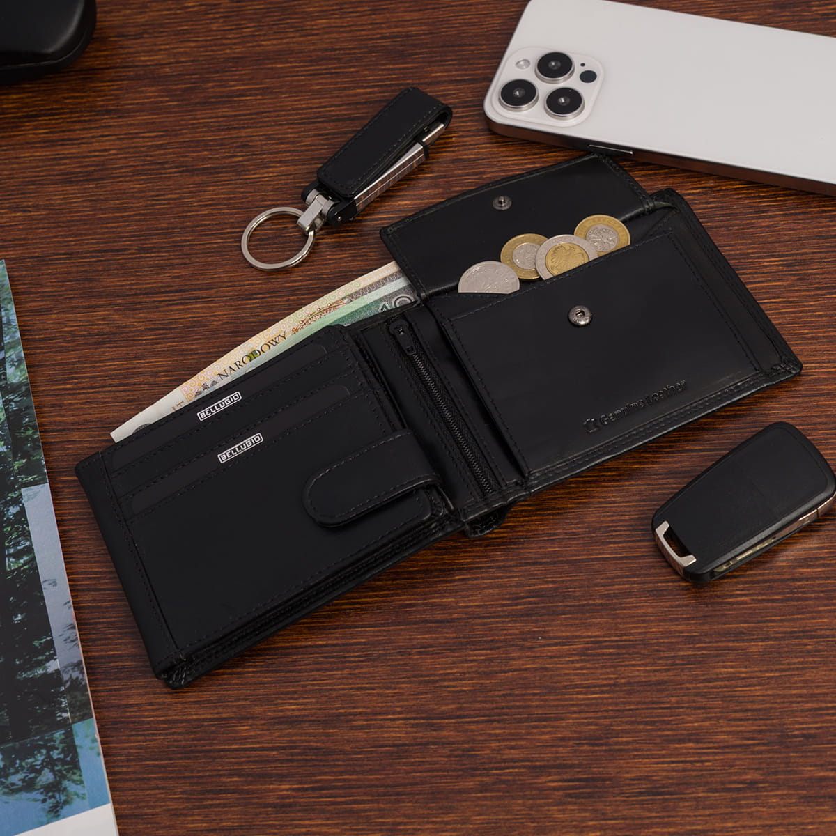 - kieszeń na bilon zapinaną na zatrzask,