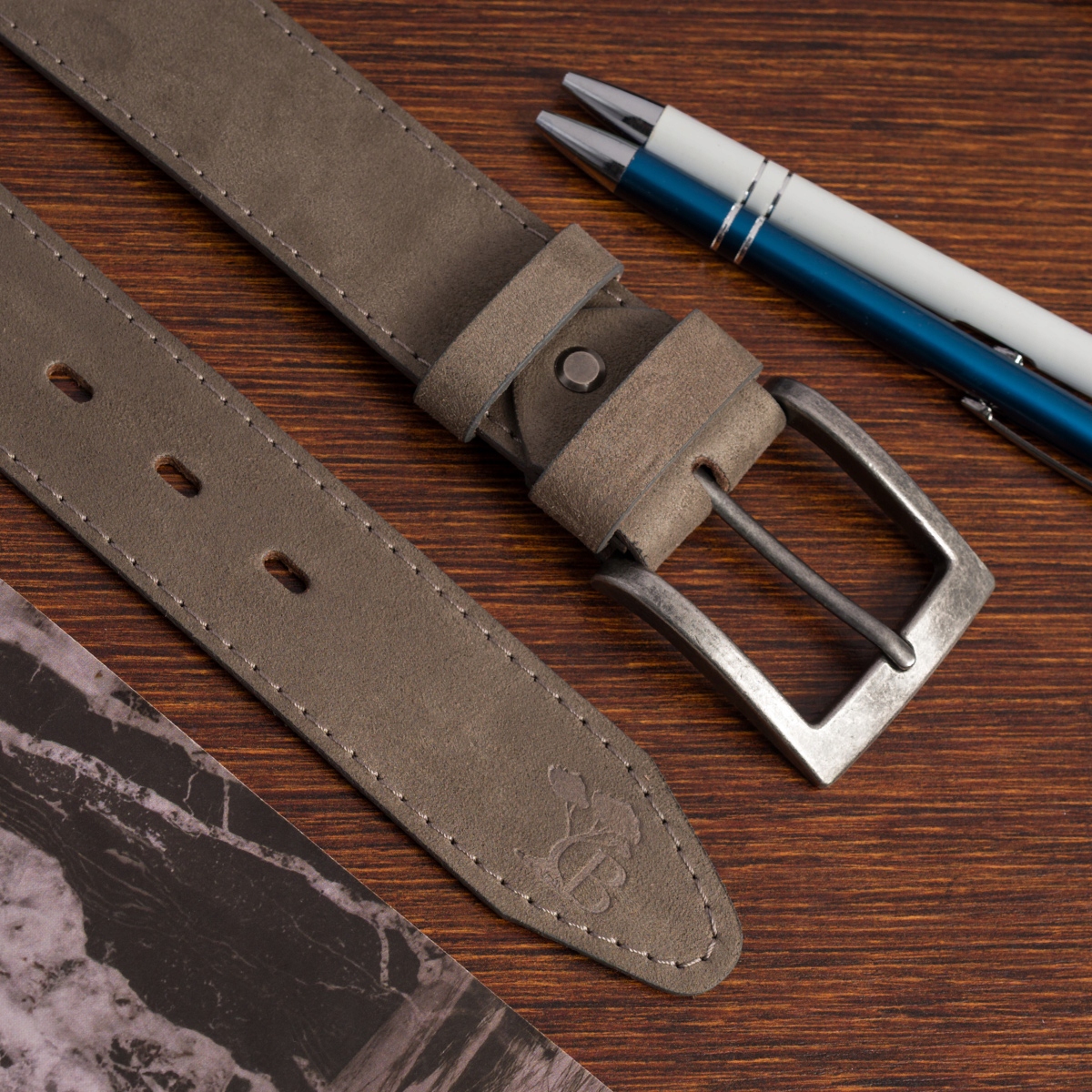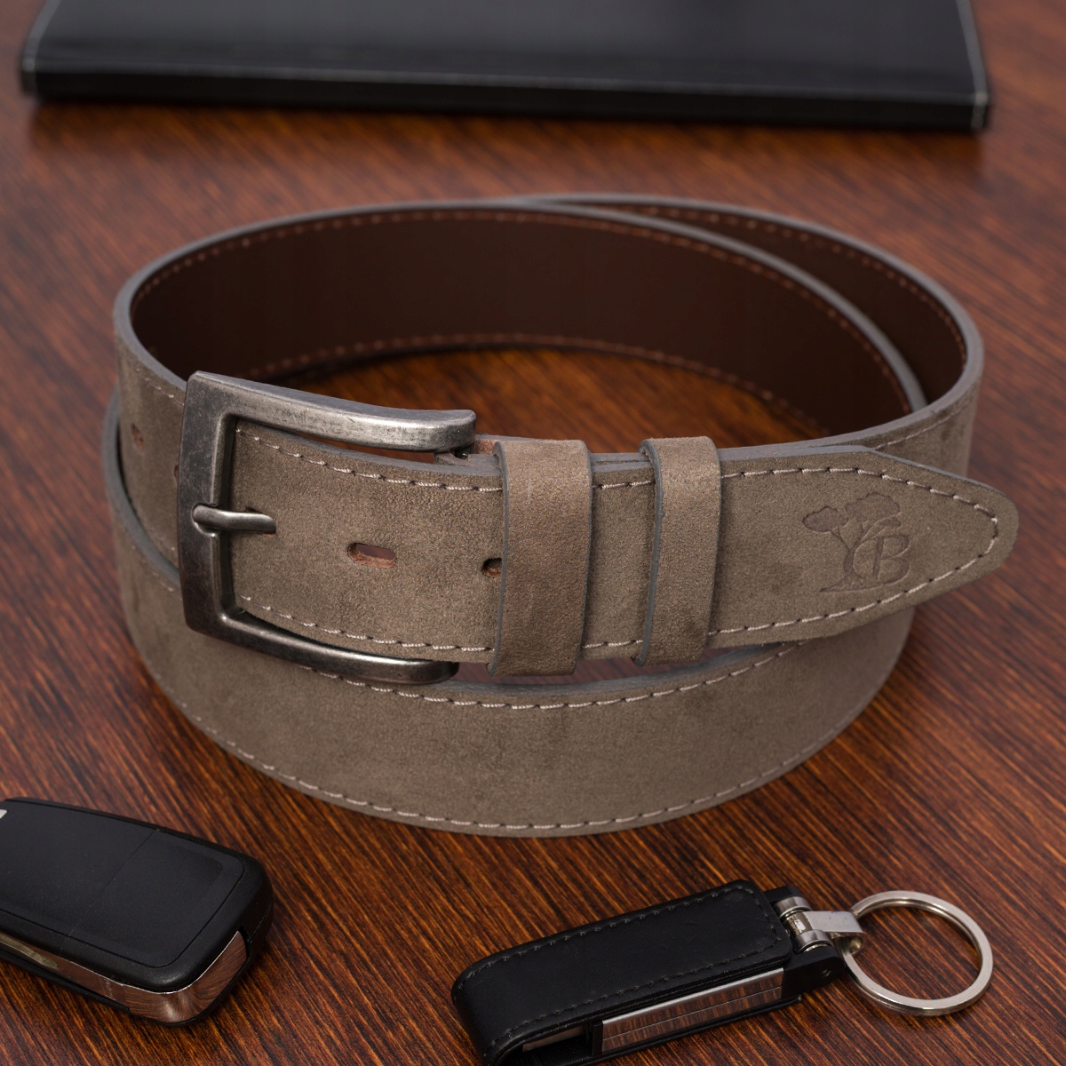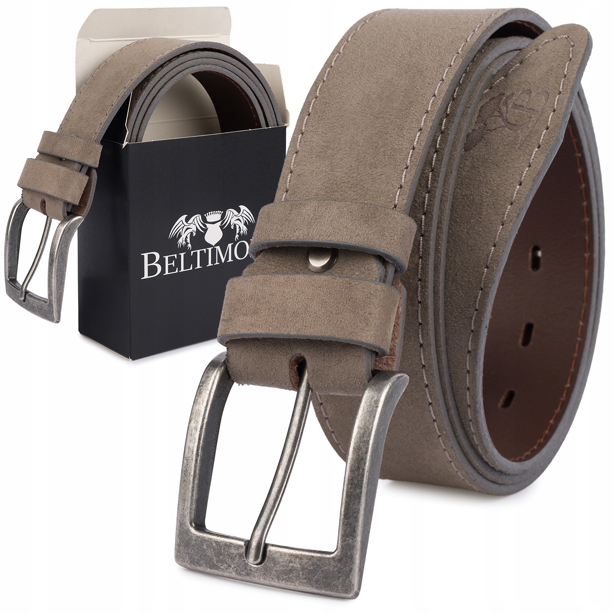 Pasek męski skórzany zamszowy szeroki 4cm klasyczny szary premium Beltimore