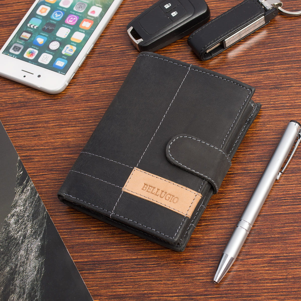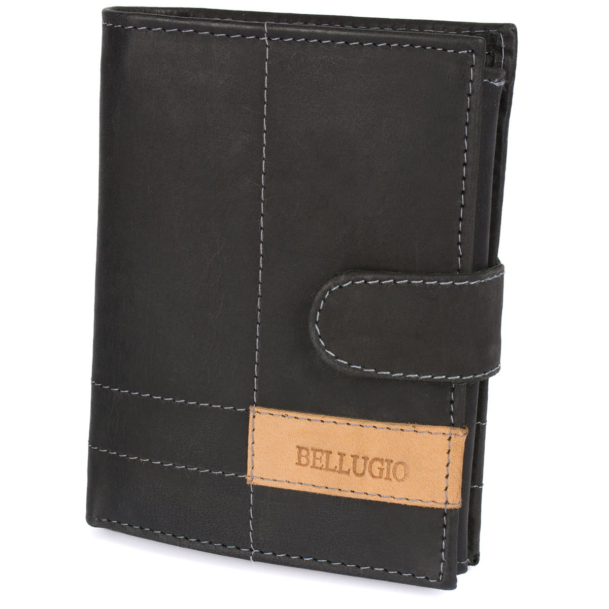 Portfel męski Bellugio® został wykonany z najwyższej jakości skóry naturalnej, która dzięki swojej niskoporowatości jest wyjątkowo gładka i przyjemna w dotyku. Jasne przeszycia oraz jaśniejsza skórzana łatka z wytłoczonym logo producenta nadają mu wyjątkowego charakteru i podkreślają elegancki, klasyczny styl.