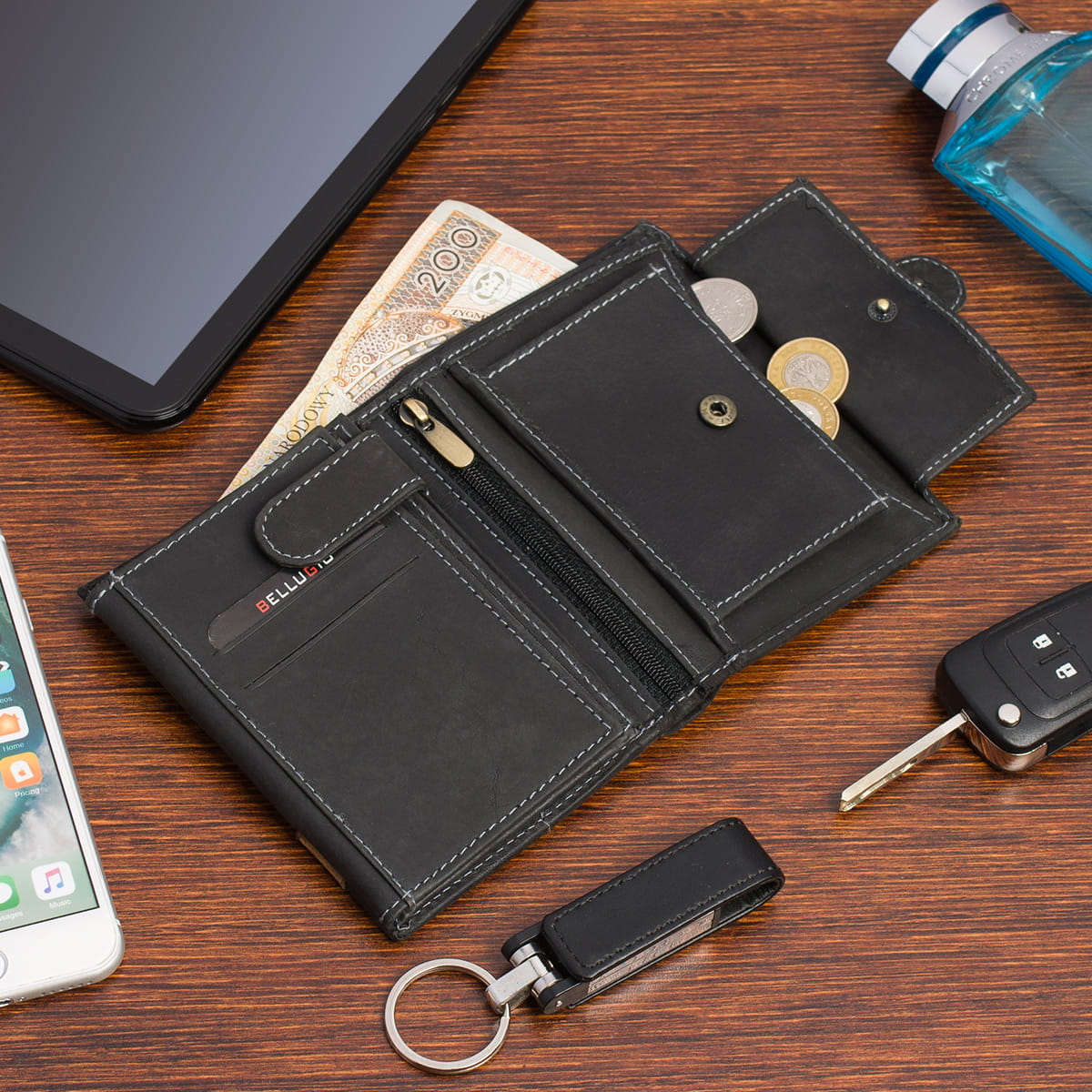 - kieszeń na bilon zapinaną na zatrzask,