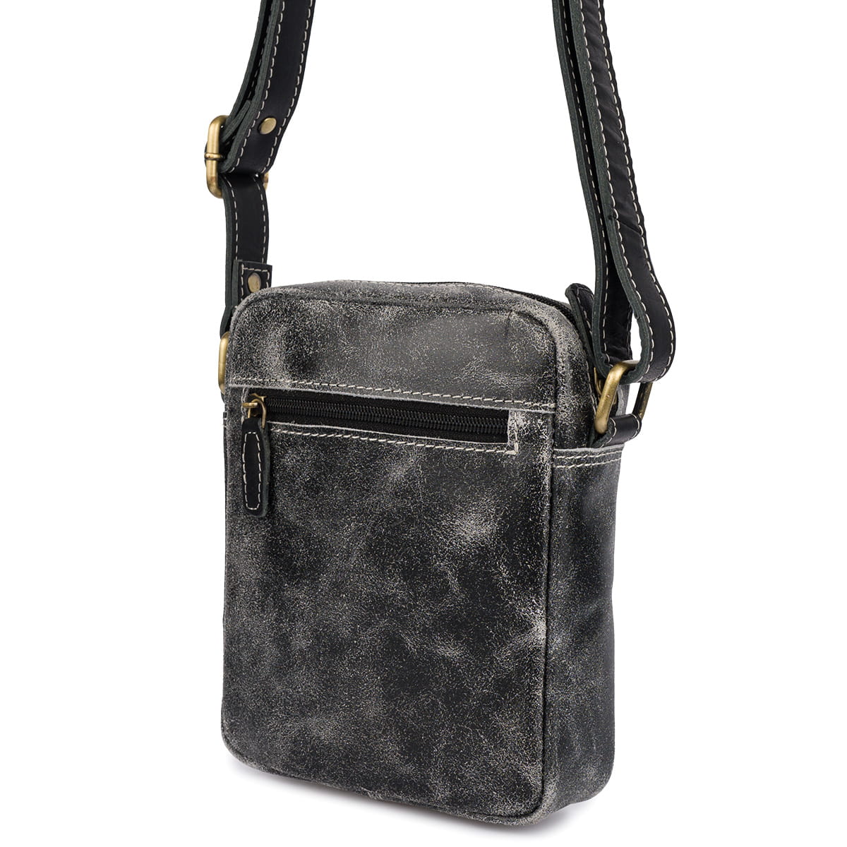 Skórzana listonoszka męska z kieszeniami Wild Tiger - czarna