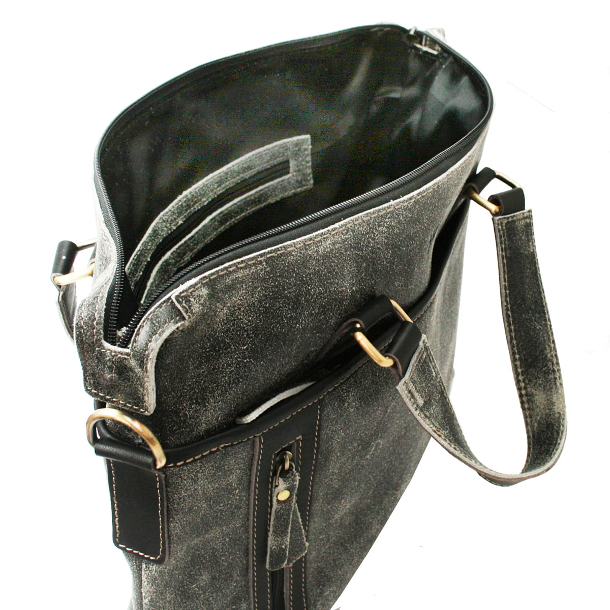 Torba posiada przestronną komorę główną zamykaną na suwak, która pomieści dokumenty formatu A4. Wewnątrz znajdują się dodatkowe przegródki – kieszonka na zamek oraz dwie otwarte kieszonki, idealne na drobiazgi, telefon czy portfel. Z przodu umieszczono mniejszą kieszeń na suwak, a z tyłu praktyczną kieszeń zamykaną na zamek, zapewniającą szybki dostęp do rzeczy najczęściej używanych.
