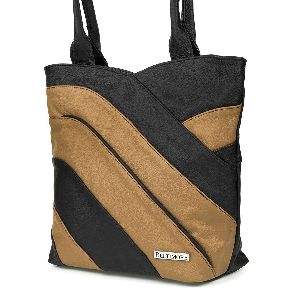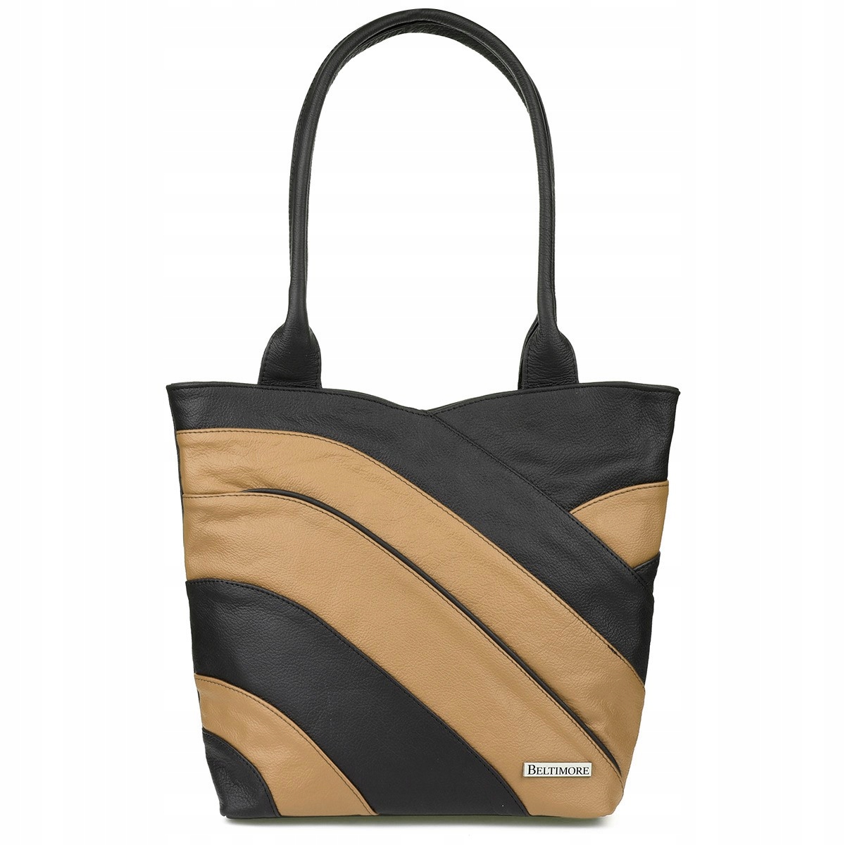 Skórzana Damska Torba na Ramię Beltimore L38 w kolorze czarno beżowym.