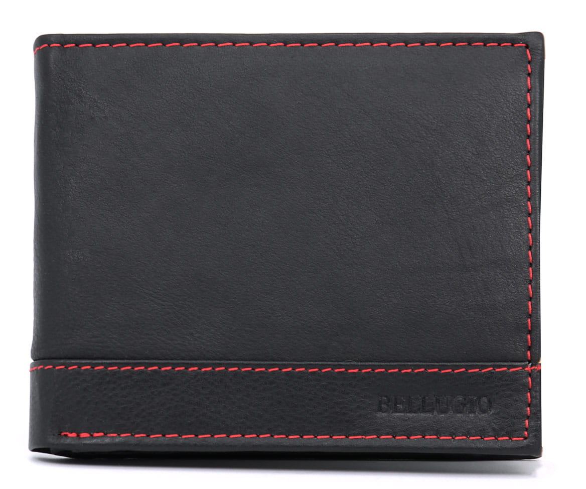 Portfel męski z czerwoną nicią Bellugio - czarno-czerwony